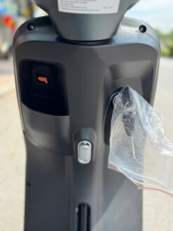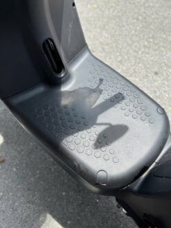 Bên dưới yên xe là cốp chứa rộng rãi, đủ để cất balo, sách vở hoặc đồ dùng cá nhân. Ngoài ra, xe còn có sàn để chân phẳng tạo sự thoải mái khi di chuyển đường dài, và bàn đạp dự phòng hỗ trợ trong trường hợp xe hết điện bất ngờ.